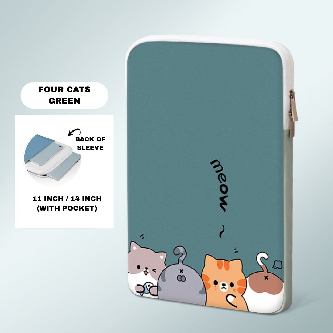 Tablet Laptop Embroidery Bag – Green Chubby Cat (with Strap)